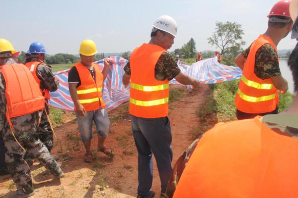 本次演練是以貴溪市新田聯(lián)圩防洪工程施工項目所在地連日持續(xù)大雨天氣,引發(fā)羅塘河河水暴漲,導致樁號K10+247~K11+000段大堤出現(xiàn)塌方、開裂現(xiàn)象,啟動防汛應(yīng)急預(yù)案為背景,開展的防汛演練。演練科目包括:險情報告、啟動應(yīng)急預(yù)案,組織應(yīng)急救援隊伍投入搶險,堤腳拋石固腳、堤身砂卵石及土方填筑、堤身迎水面鋪設(shè)防沖彩條布、編織袋裝砂石堤身加固等內(nèi)容。演習完成后,參與演習的主要成員,對本次演習效果進行了評價,為公司《防汛應(yīng)急預(yù)案》的修訂完善作了充分的基礎(chǔ)工作。
