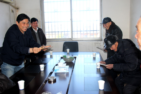 1月15日下午,省水利廳廳長孫曉山率領廳副巡視員周江紅、廳辦公室主任王純、廳人事處處長戴金華和離退休干部處處長張魯江等前往我公司南昌縣職工生活基地,看望慰問離退休老同志。公司董事長兼總經理王元旦陪同參加了慰問活動。