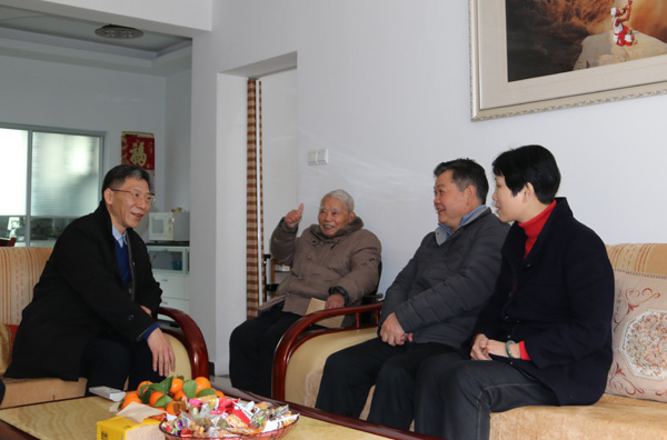 1月22日,省水利廳黨委書記、廳長羅小云率姚毅臣副廳長、廳機關黨委書記占任生前往公司親切看望慰問離休老干部,公司董事長王元旦等陪同慰問。
